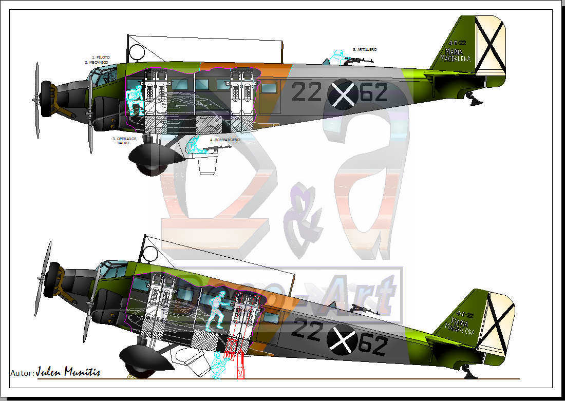 Por último diremos, para explicar la génesis de nuestro Ju 52, que también hubo una versión militar de bombardero del G 24, que recibió la designación de Junkers K 30, con tres posiciones artilladas y soportes subalares para las bombas. Se fabricó en Suecia, Turquía y la URSS, en este último país con la denominación R 42.