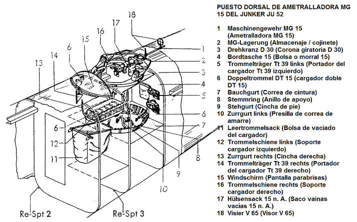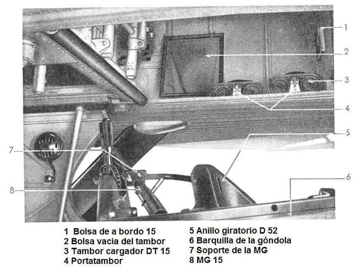 - una MG 15 en la posición – B (torreta de cola); manejada por el mecánico.
